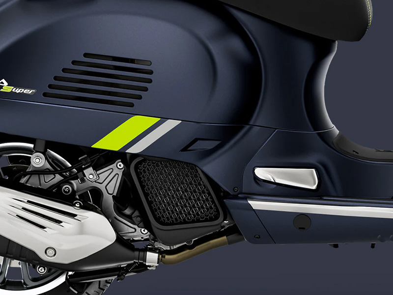 The Vespa Gts SuperTech’s Euro 5+ single-cylinder 125-cc i-get engine ensures a riding experience that is agile yet safe. Distinctive elements such as the steel frame, 12” wheels and disc brakes with dual-channel ABS work together to offer excellent handling, efficiency and stability wherever you go. Anti-slip ASR rounds off the package.